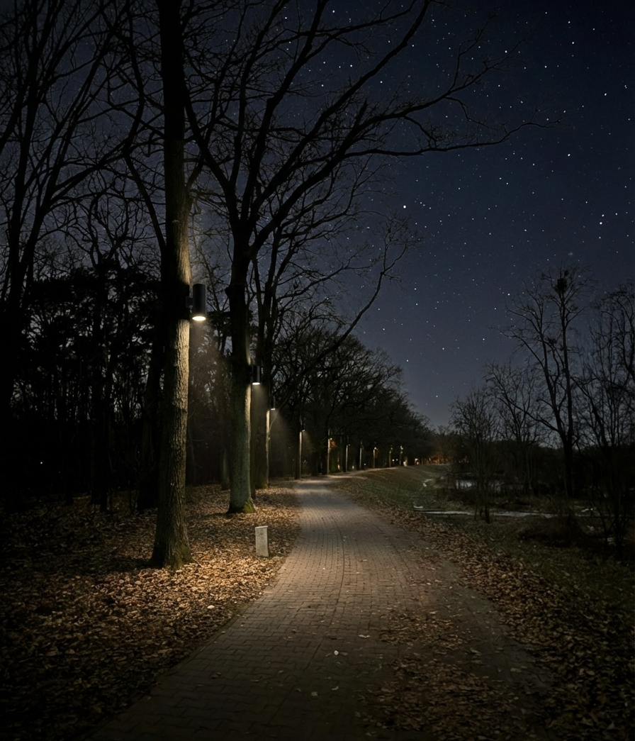 Projekt zakłada rewitalizację 2 km trasy spacerowo-rowerowej poprzez innowacyjny, strefowy system oświetlenia, który przywraca tereny nadodrzańskie mieszkańcom. Zamiast inwazyjnych latarń stawiamy na harmonię z przyrodą: