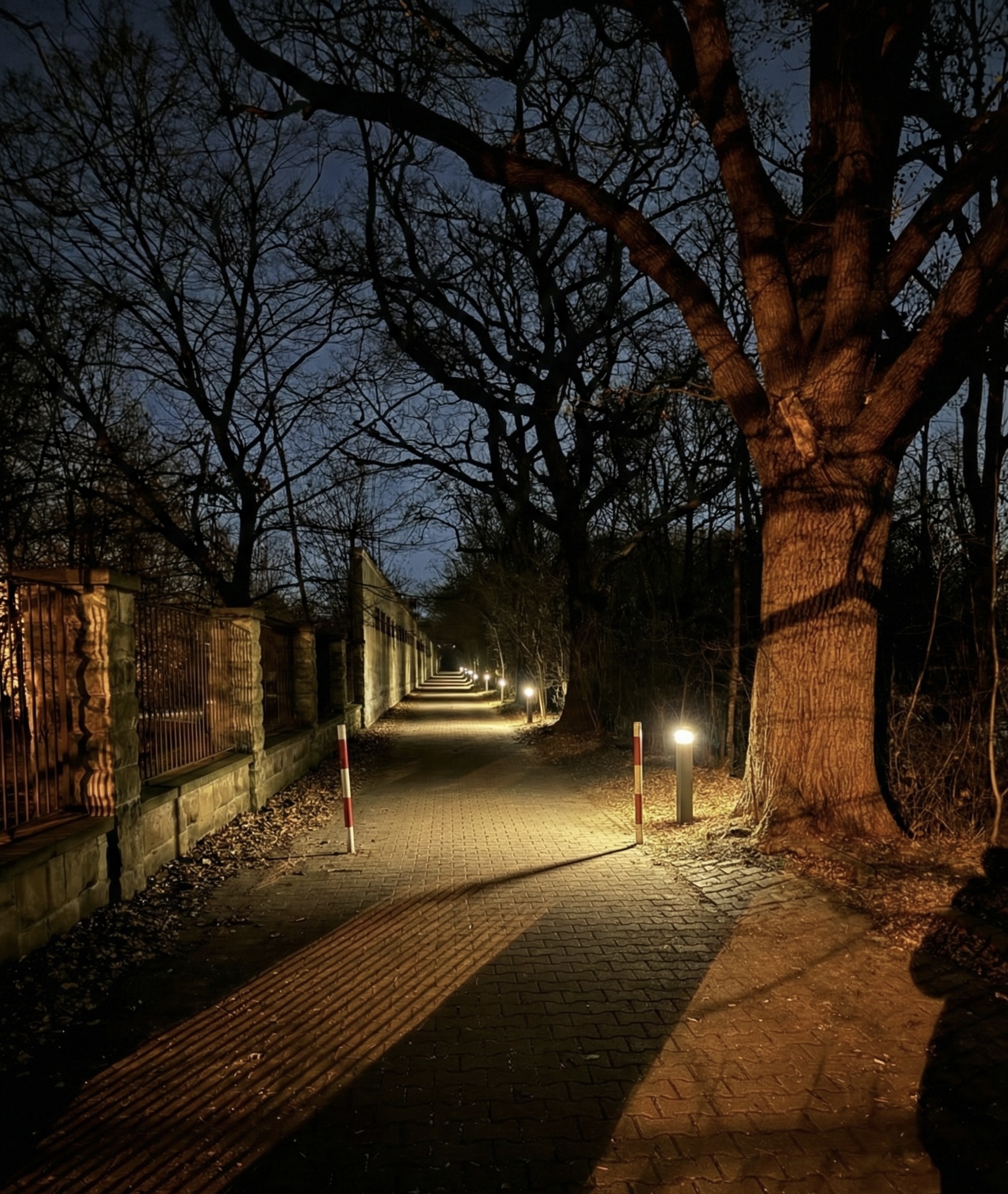 Klimat: kilkaset metrów dyskretnych, niskich słupków oraz malowniczej iluminacji drzew, tworzącej unikalny nastrój.
