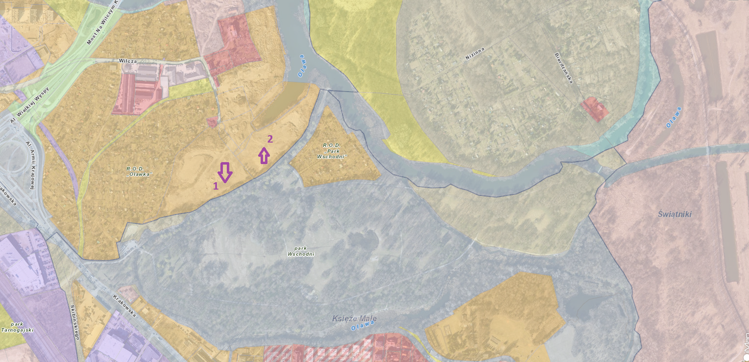 Lokalizacja szczegółowa Orientacyjna lokalizacja Strefy Aktywności - orientacyjnie w jednym z punktów z załącznika, na północ od Parku Wschodniego, między działkami ROD a Parkiem Wschodnim. Dodatkowo zaznaczona lokalizacja w załączniku (w lokalizacji 1 lub 2)