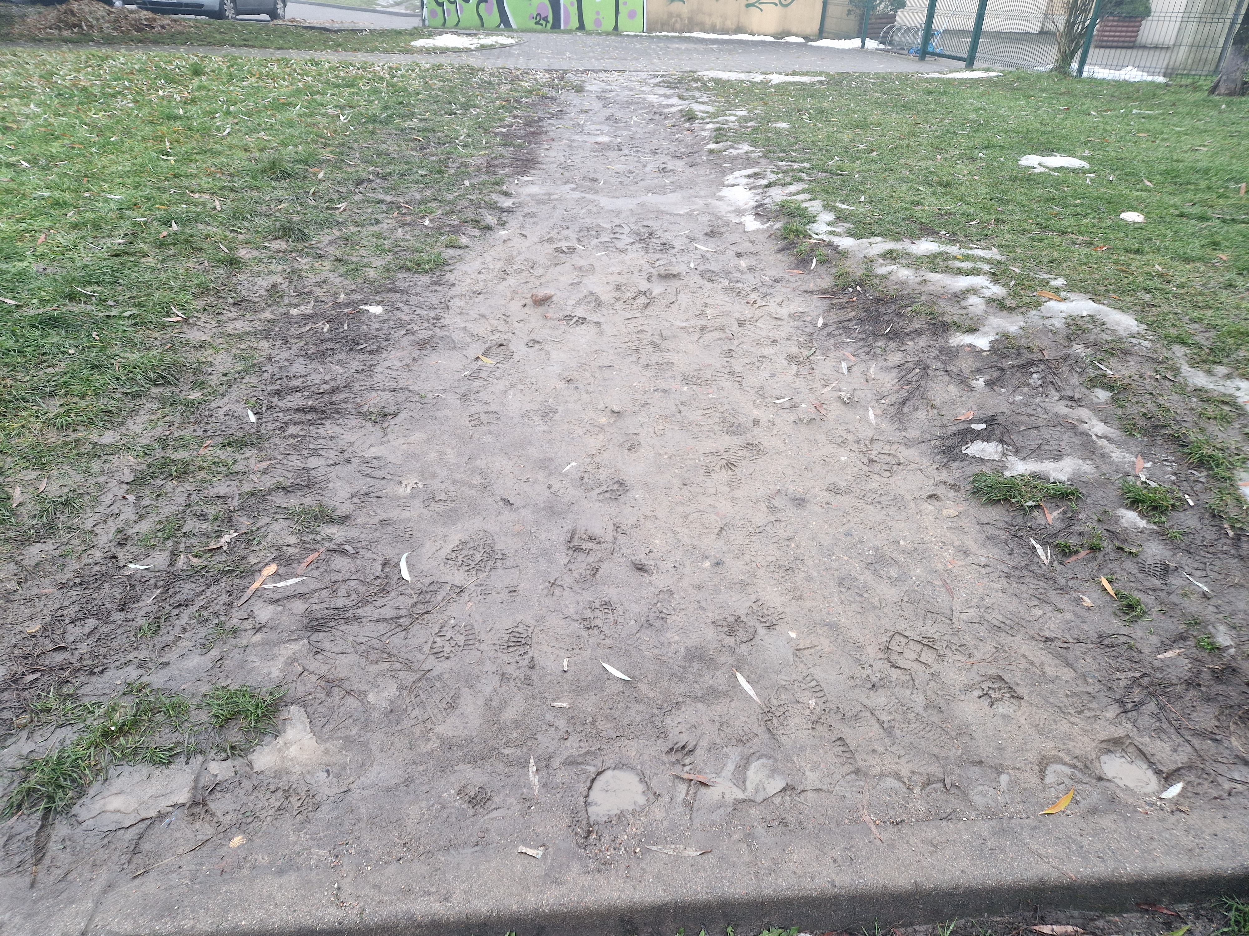 Dojście do przedszkola nr 92 oraz przejście wokół niego oznacza spacer po wydeptanych ścieżkach lub nadkładanie drogi, aby przejść wzdłuż przejazdów dla samochodów. Przy deszczowej pogodzie oznacza to chodzenie po błocie, a w zimie bywa wręcz niebezpieczne, gdyż łatwo poślizgnąć się na oblodzeniu.