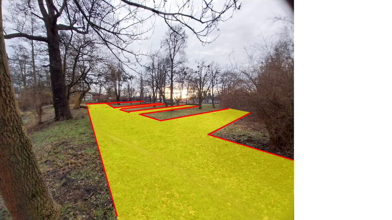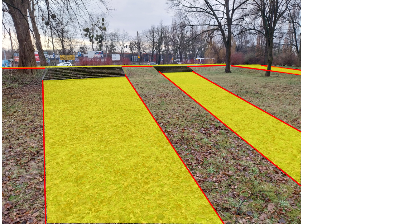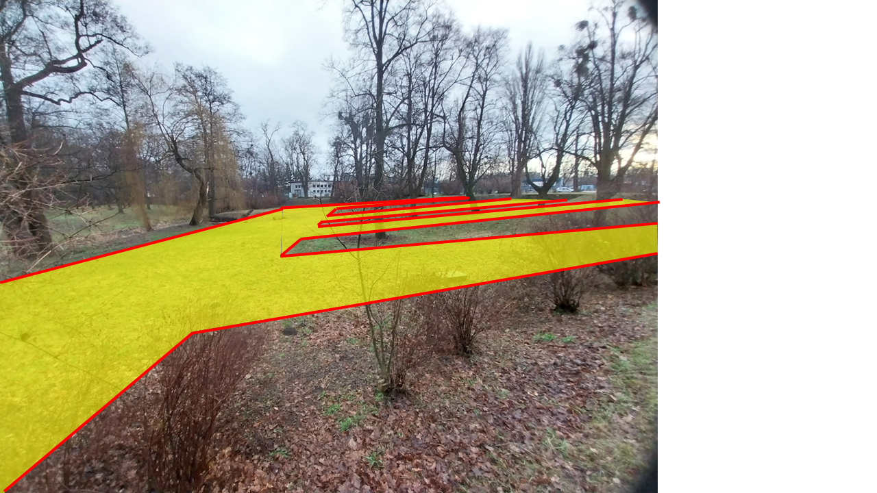 Jednocześnie obok drogi jest wielka, niezagospodarowana polana, która w przeszłości była zaplanowana jako droga wejściowa do parku w postaci szerokich alei.