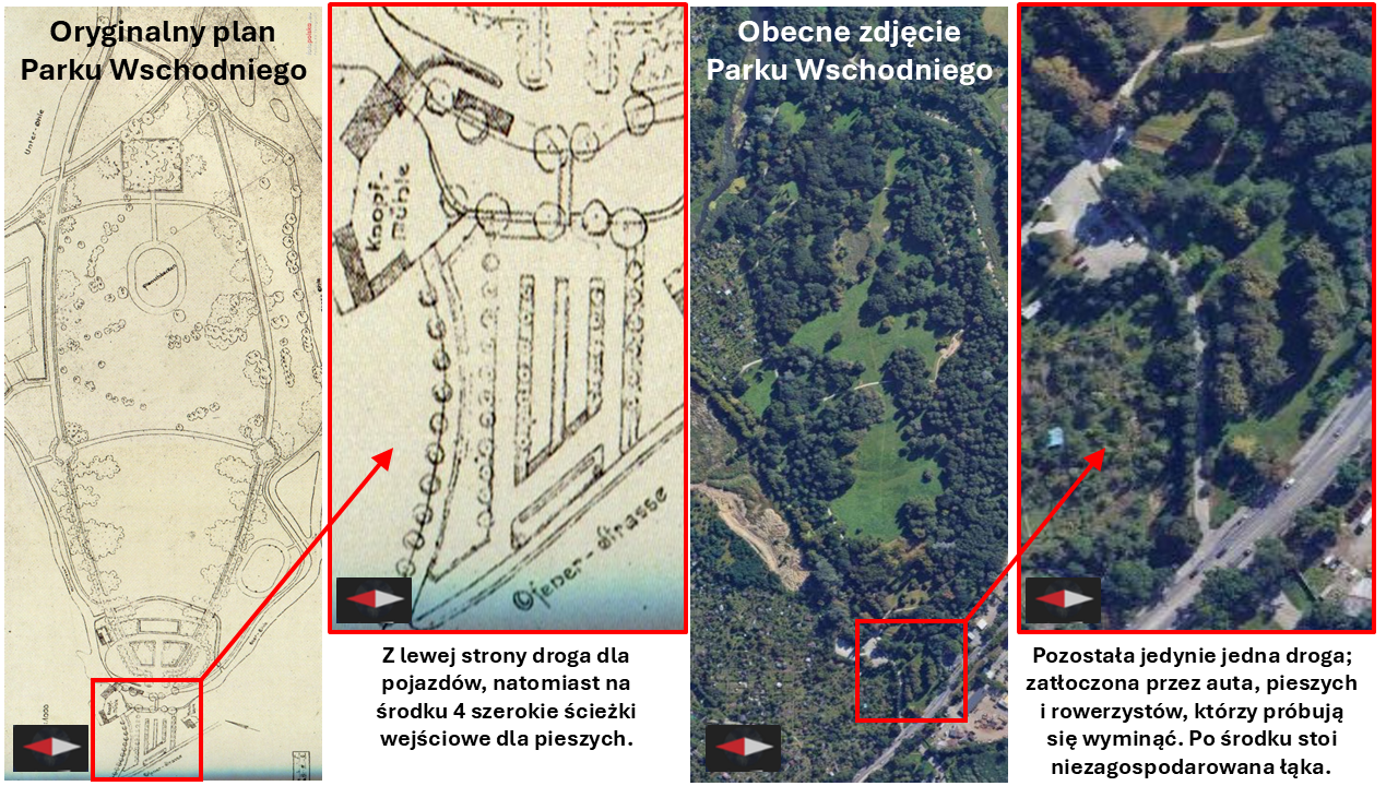 Projekt ten nie jest niczym odkrywczym, ponieważ Park Wschodni został zaprojektowany w taki sposób od samego początku, a ponadto był tak właśnie zrealizowany przy powstawaniu. Jednak oryginalne wejście gdzieś zniknęło przez dziesięciolecia, pozostały jedynie schodki.