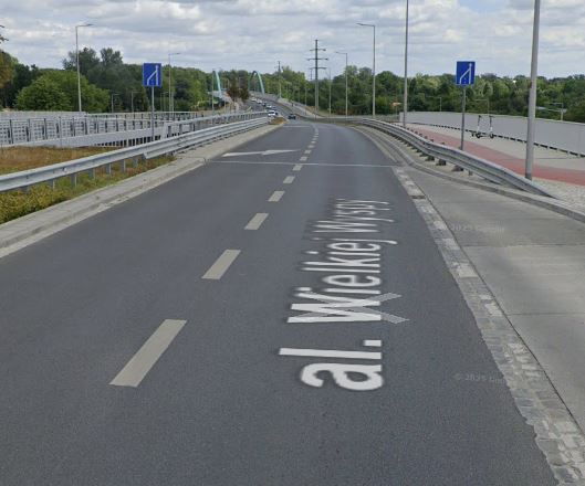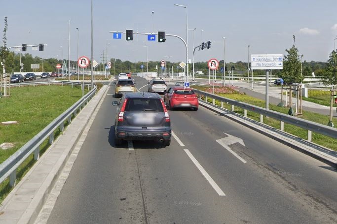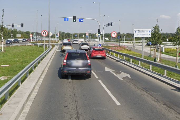 Płynny skręt w kierunku ul. Krakowskiej przy wjeździe na al. Wielkiej Wyspy [WBO 2026]