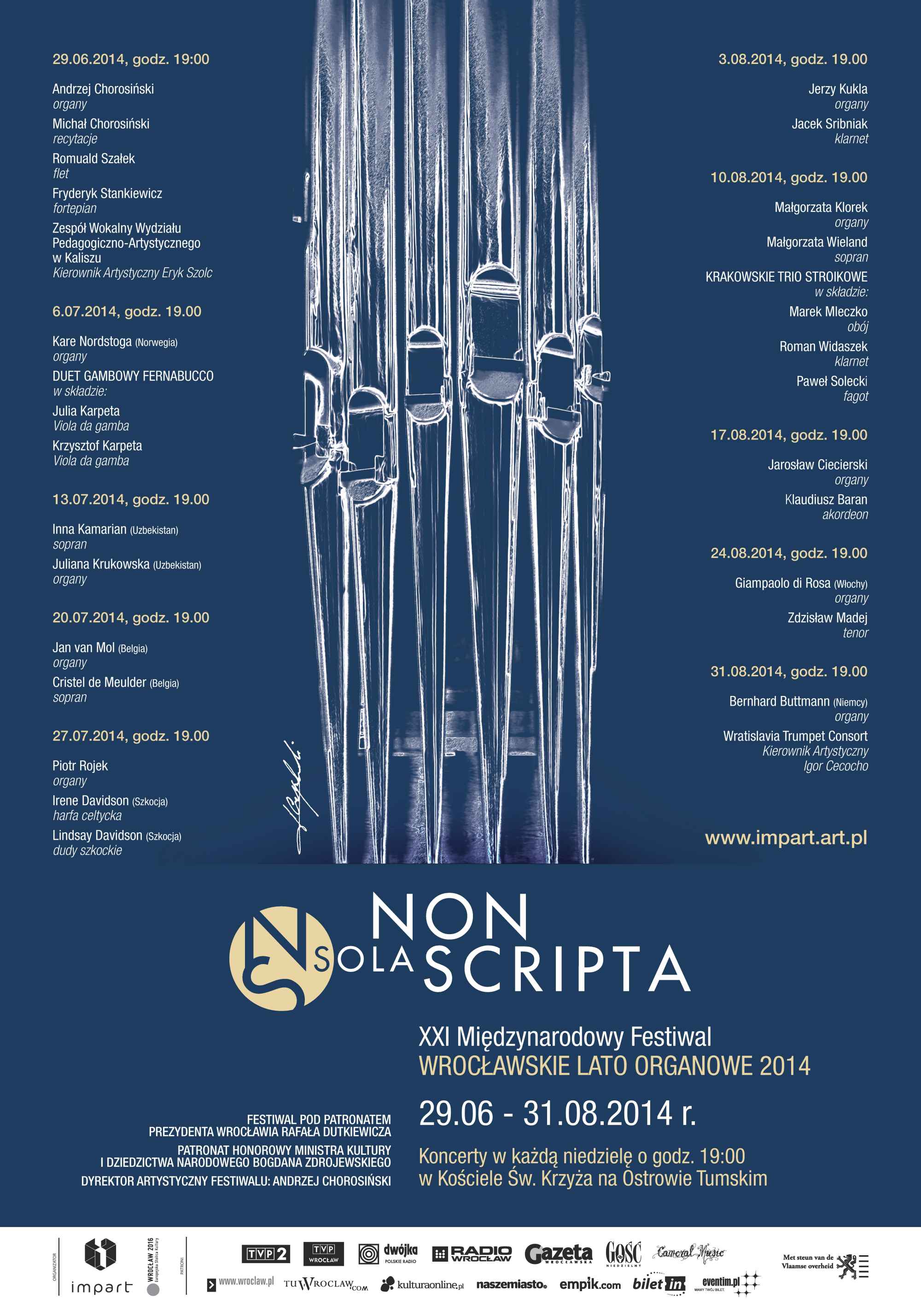 Nazwa imprezy – Non sola scripta – tłumaczona z łaciny oznacza nie tylko to, co zostało zapisane i odnosi się do sztuki improwizacji, stałego elementu warsztatu każdego szanującego się organisty. – Improwizacje tworzone są często ad hoc, na bieżąco, podczas koncertów, a fakt komponowania i wykonawstwa dokonuje się w tym samym momencie – przyznaje profesor Andrzej Chorosiński, dyrektor artystyczny Wrocławskiego Lata Organowego.