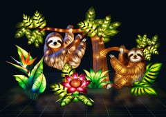 Samica po ciąży trwającej od 6 do 8 miesięcy rodzi od 3 do 16 młodych. Maluchy są znacznie ciemniejsze od osobników dorosłych, mają czerwony wzorek. Z czasem zzielenieją. Po pół roku ten kolor stanie się ich barwą naturalną. W wieku 3-4 lat osiągną dojrzałość płciową.