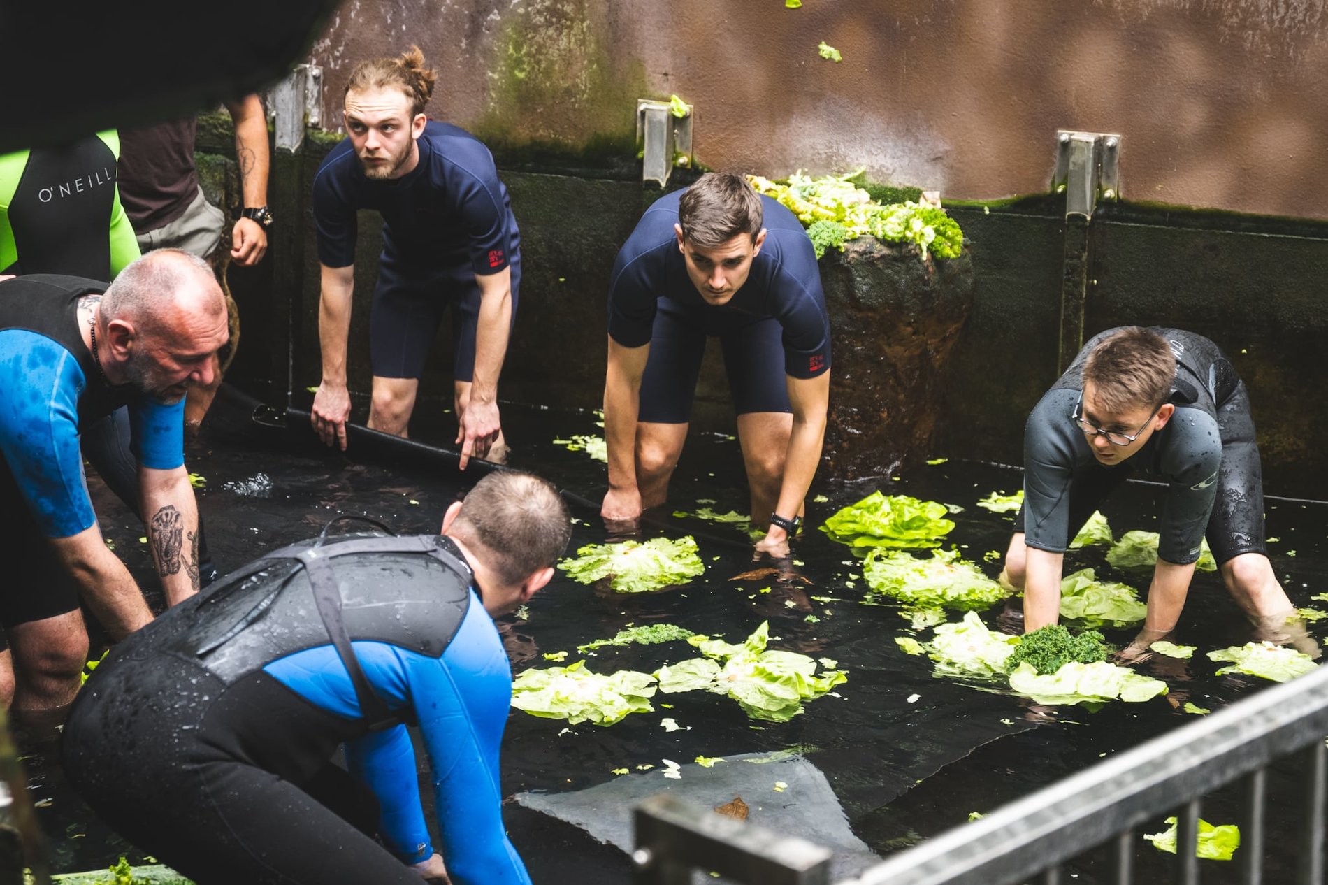 - przez szybę, dzięki której można obserwować, co robią pod wodą.