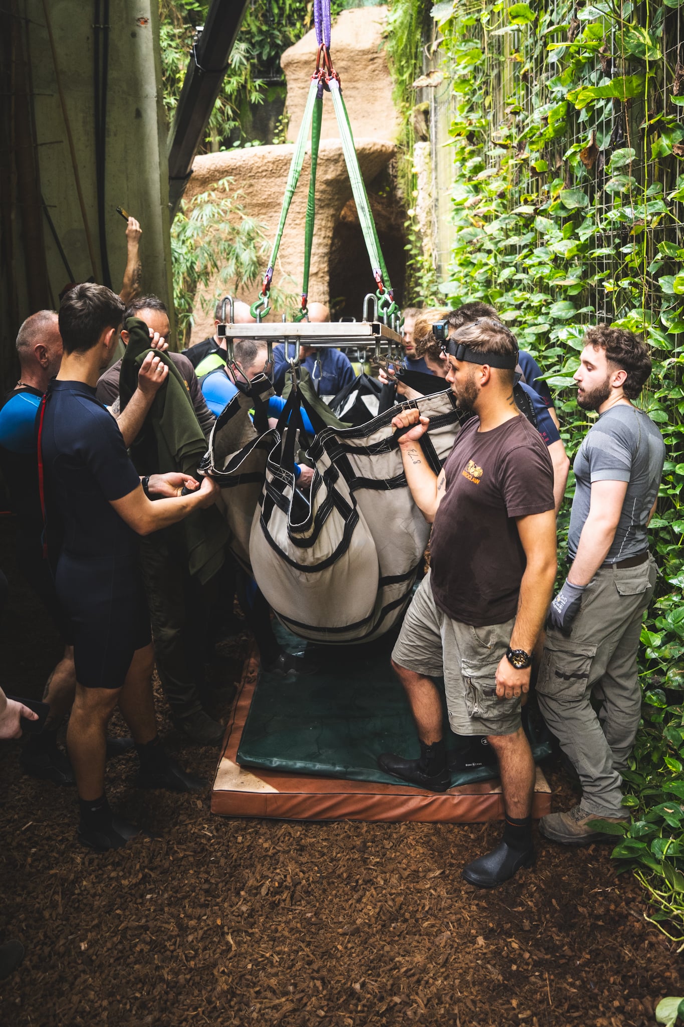 W akcji brało udział całe mnóstwo osób. Żeby nie powodować u zwierzęcia dodatkowego stresu, cała operacja odbyła się bez udziału zwiedzających.