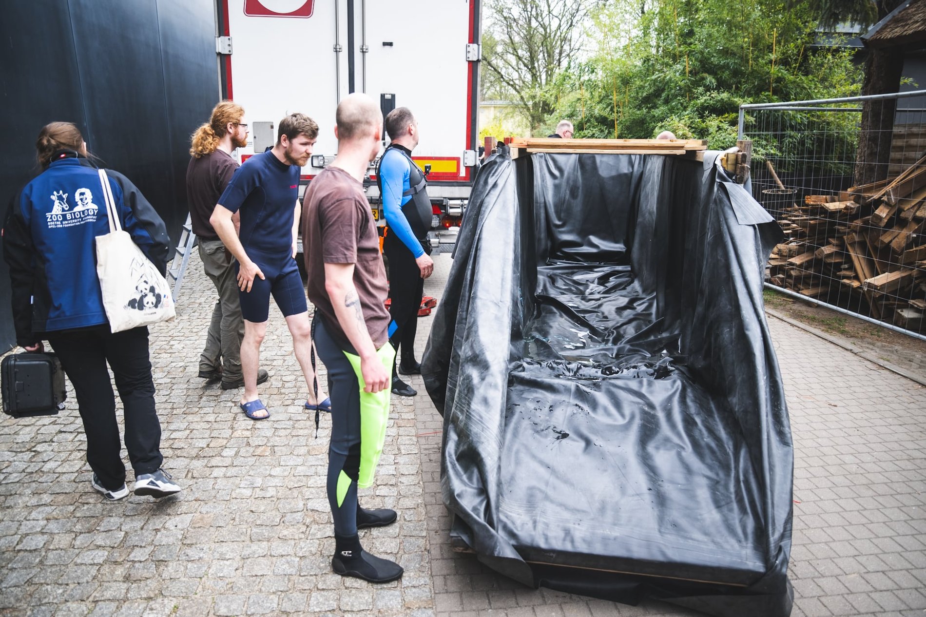Na czas podroży wypełniona wodą skrzynia została zabezpieczona wiekiem z otworami, przez które można do niego zaglądać.