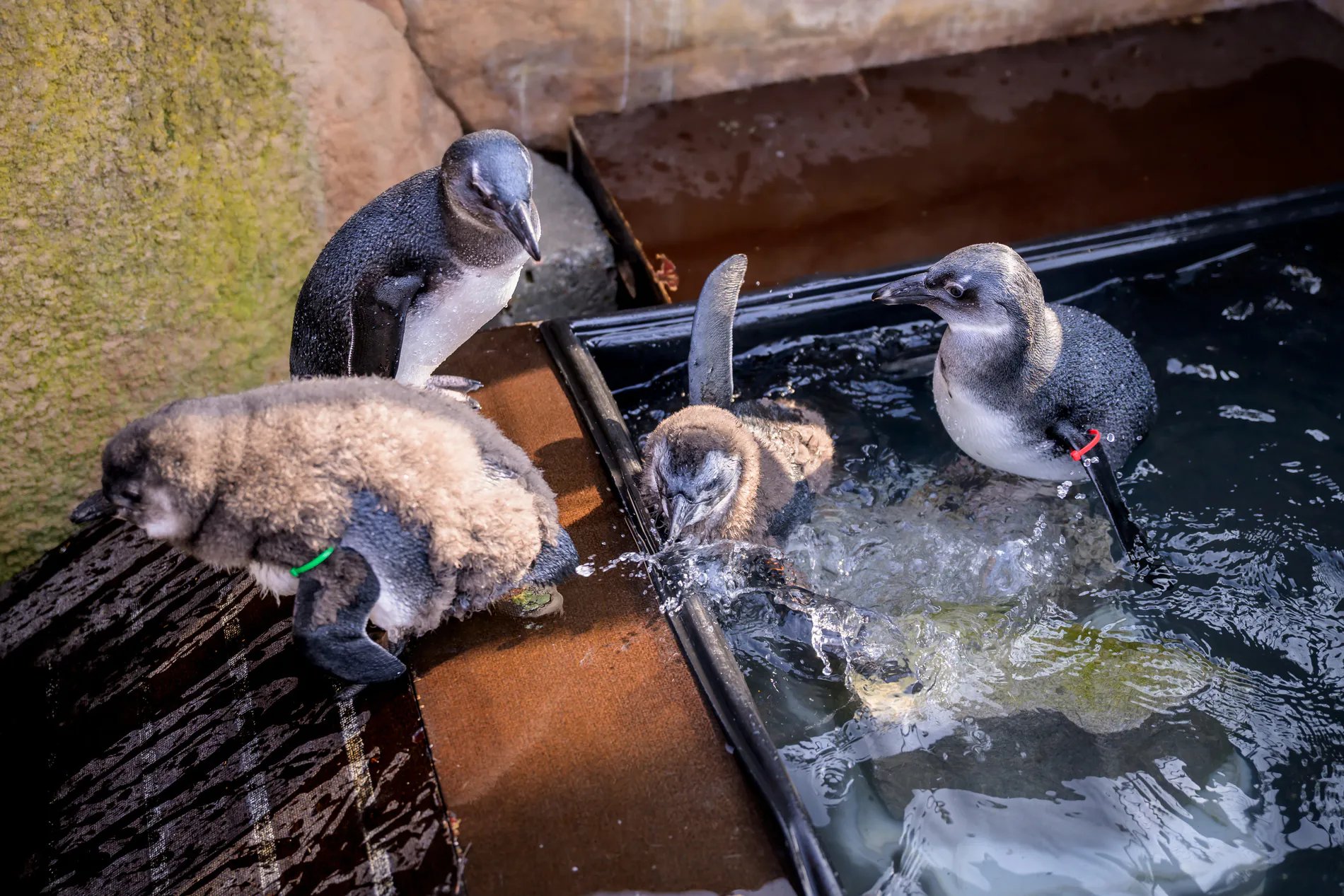 W pingwinim przedszkolu jak na drożdżach rośnie 6 piskląt pingwinów przylądkowych, czyli tońców: Mikołajek, Śnieżka, Stakub, Pogo, Venti i Slaksiu. Oswajają się z opiekunami i uczą pływać.