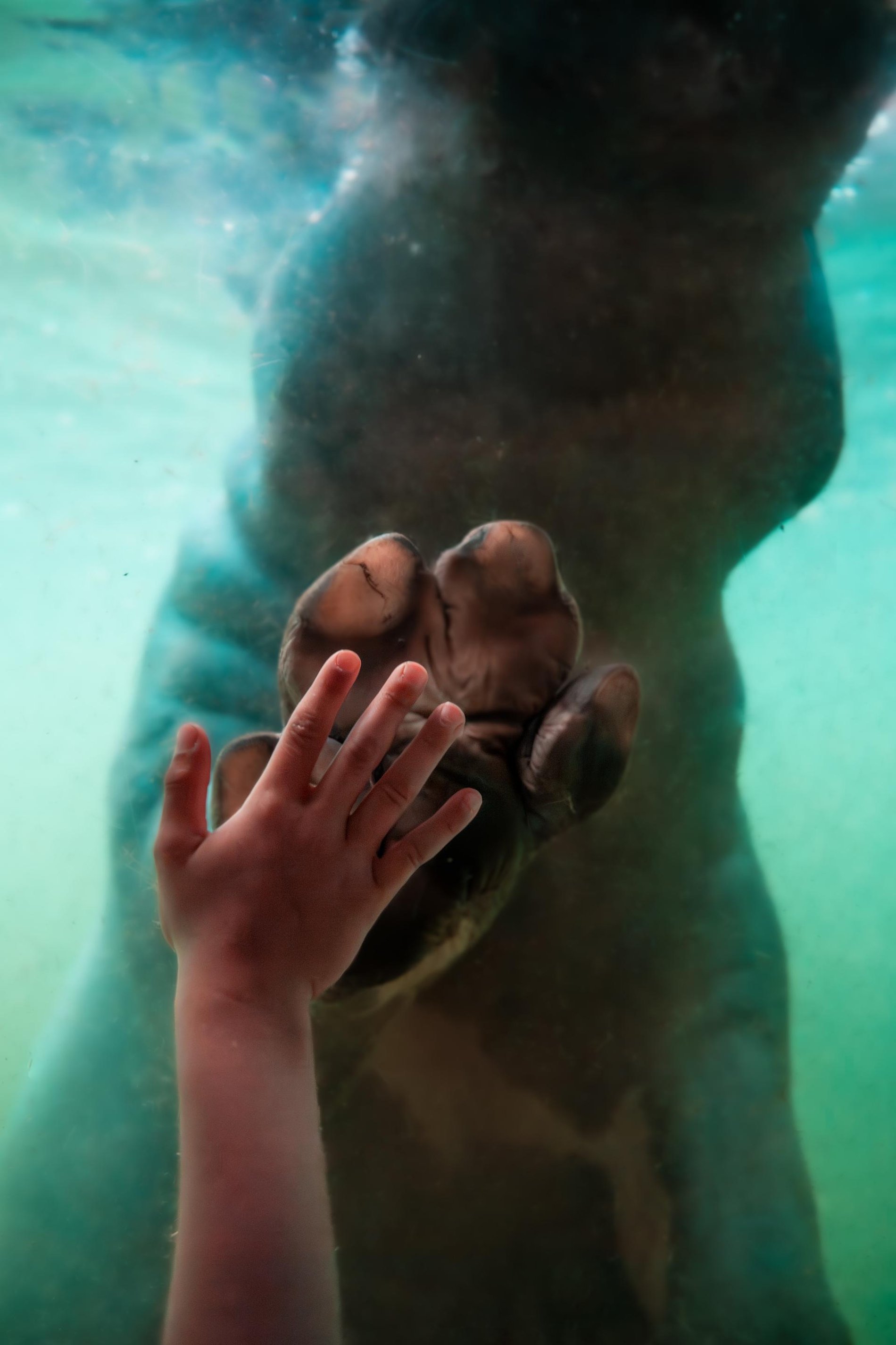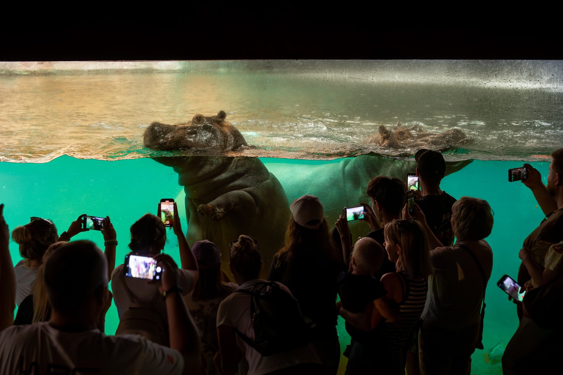 Podczas pokazowych karmień warto przyjrzeć się, jak hipopotamy poruszają się pod wodą i jak są zbudowane.