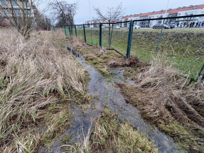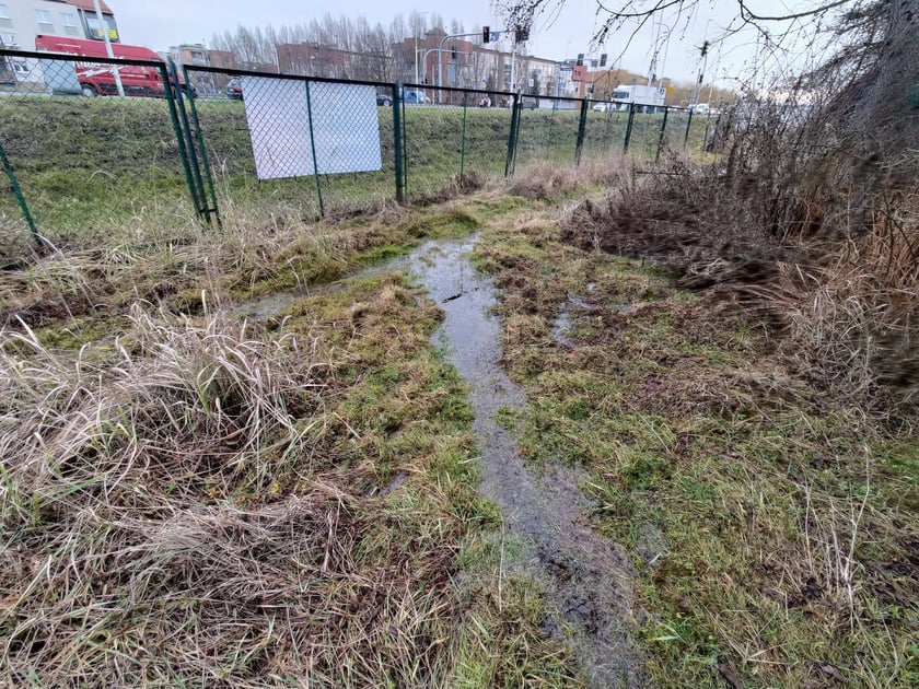 A ponieważ na tym obszarze w gruncie występuje glina, więc po opadach często gromadzi się tam i stoi woda. Tym bardziej, że od strony ul. Buforowej jest niewielki nasyp, sprawiający, że ten skrawek terenu jest w zagłębieniu.