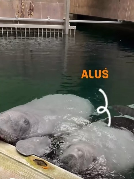 A początki miał ten najmłodszy manat niełatwe, bo mama nie chciała się zajmować maluchem i mlekiem z butelki dokarmiali go opiekunowie. Szybko jednak zaczął pić mleko od mamy i przetrwał. Dorasta i dostosowuje się do pięciu innych manatów, jakie zamieszkują Zoo Wrocław.