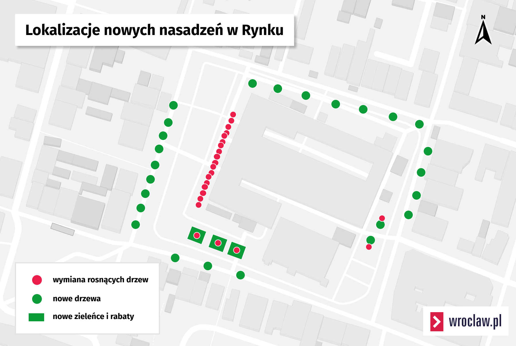 Zazielenienie Rynku, które zostało uzgodnione z Dolnośląskim Wojewódzkim Konserwatorem Zabytków, to nie tylko nowe nasadzenia drzew i innych roślin, ale także przygotowanie podłoża, poprawa warunków siedliskowych i częściowa przebudowa nawierzchni Rynku. Będzie to z pewnością jedna z ważniejszych inwestycji w ścisłym centrum miasta, w której ochrona dziedzictwa kulturowego łączy się z odpowiedzią na wyzwania klimatyczne.
