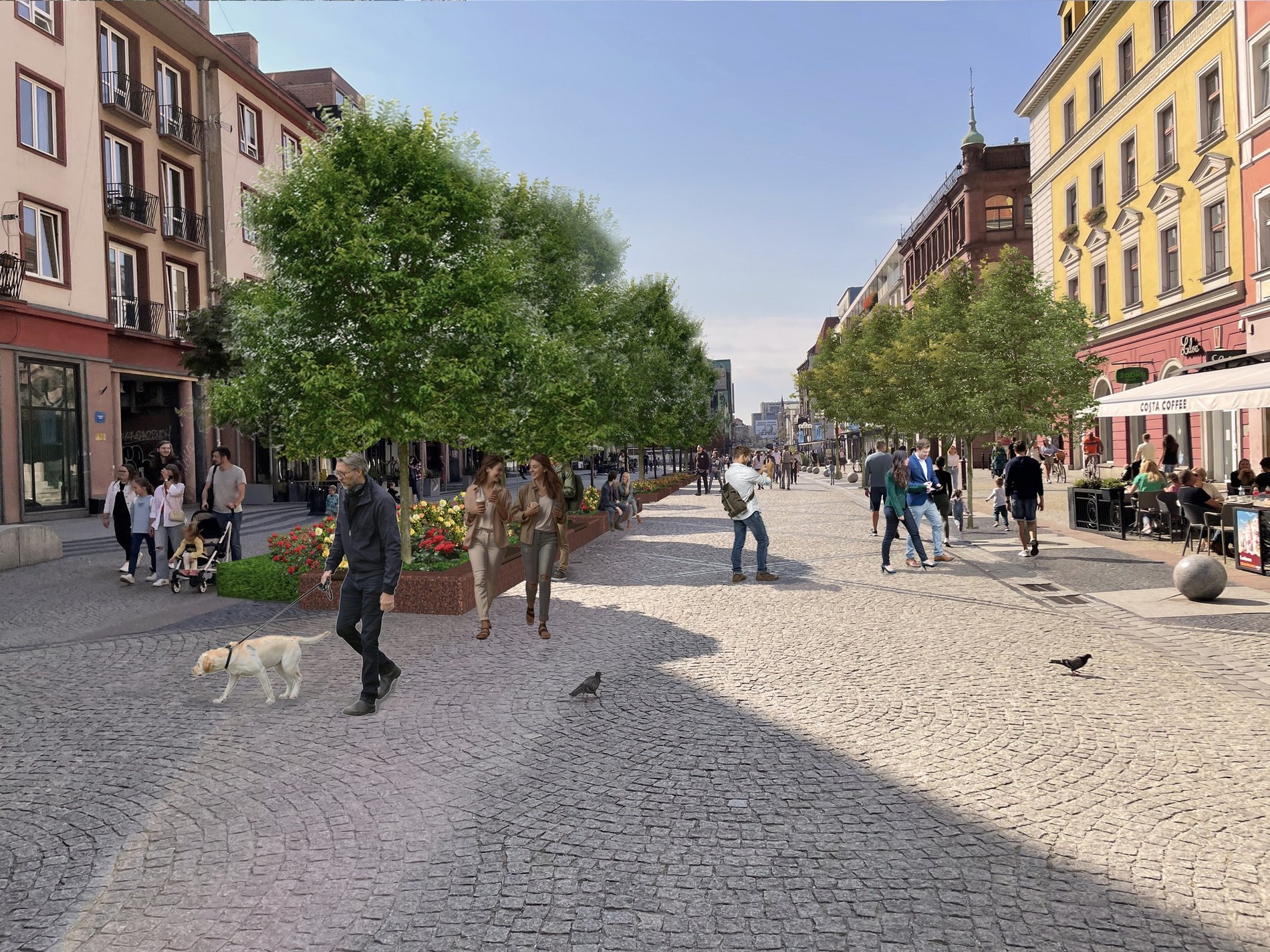 Na głównym deptaku spacerowym Wrocławia planowane jest również posadzenie nowych drzew – na odcinkach między Rynkiem a Kazimierza Wielkiego oraz między ulicami Kazimierza Wielkiego a Modrzejewskiej (etapy II i III).