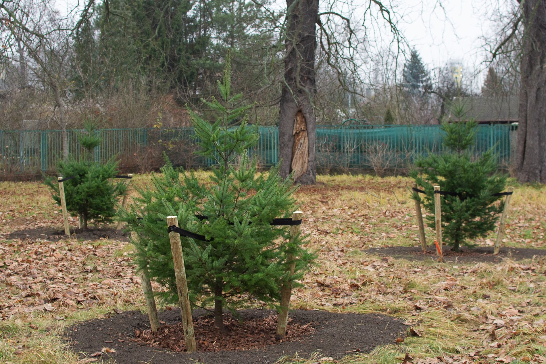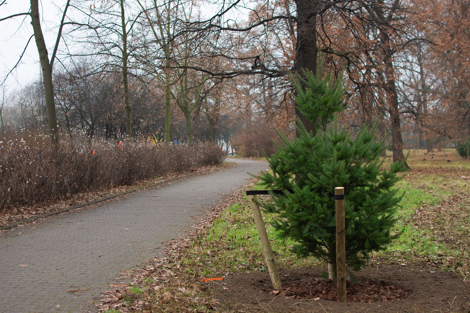 Tym razem sadzimy także drzewa iglaste i nie z powodu świąt, ale ze względu na dobre warunki dla nich w bliskim sąsiedztwie parku. Drzewa iglaste w mieście to wyzwanie dla nich i dla pielęgnujących. Trzymamy kciuki za nasze daglezje! Może któraś z nich dogoni słynną sudecką Helenę?