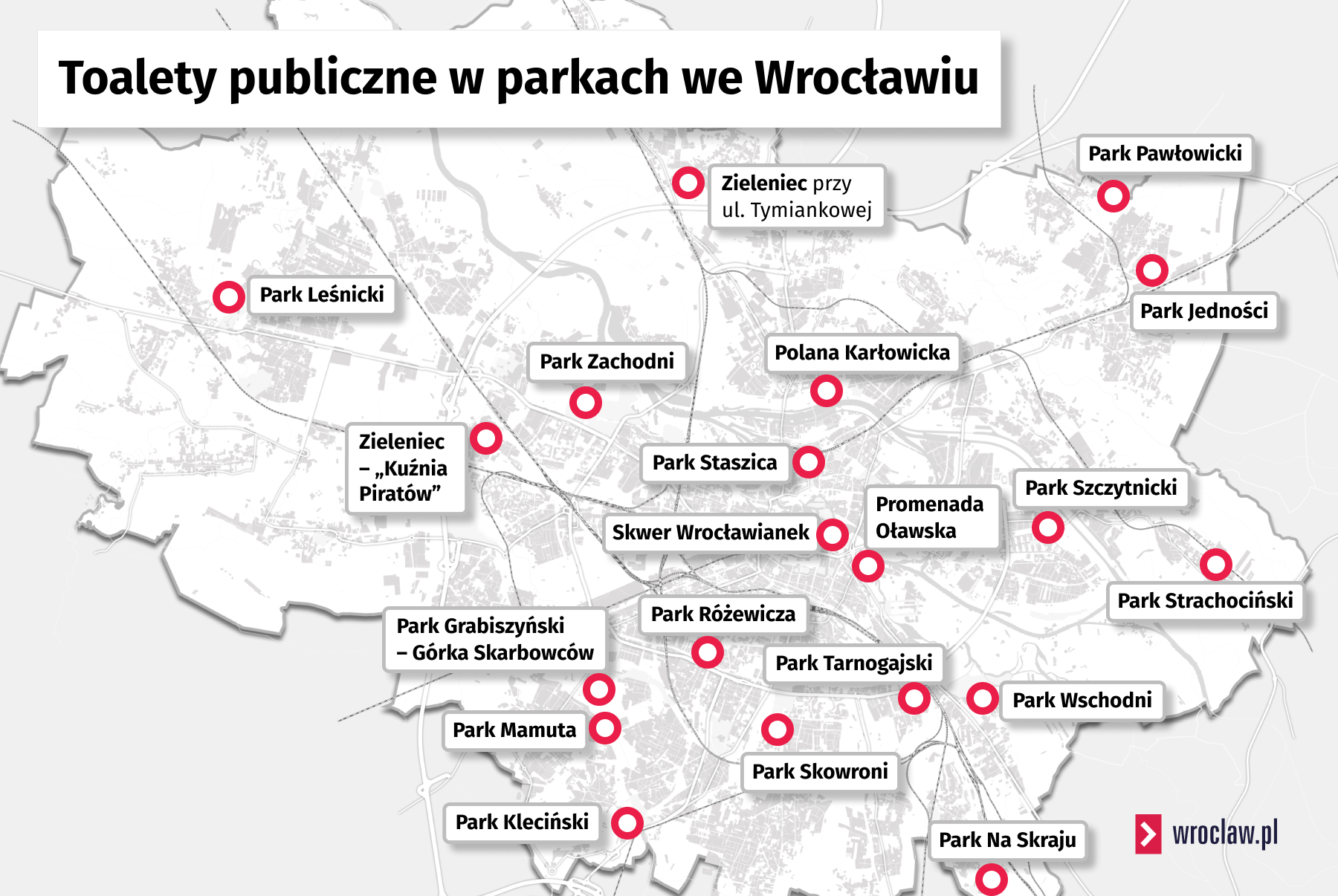 Toalety na terenach zieleni we Wrocławiu. Lokalizacje