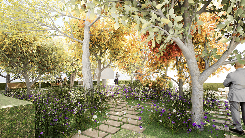 Parczek zostanie ponadto otoczony żywopłotami z grabu pospolitego. Natomiast dominującym kolorem kwiatów podczas okresów kwitnienia będzie biel (z wyjątkiem pory wczesnej wiosny).