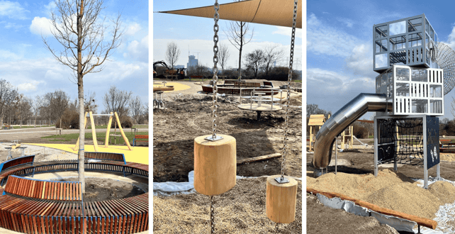 Plac zabaw leży w północnej części parku. Ponieważ są tam zjeżdżalnie, huśtawki, piaskownica i linowy tor przeszkód, jest to miejsce atrakcyjne dla dzieci w różnym wieku. W pobliżu placu zabaw jest też siłownia na świeżym powietrzu.