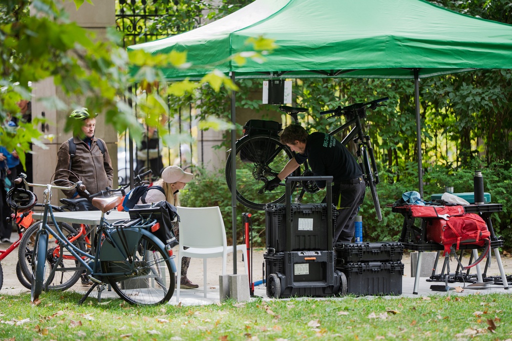 - specjaliści w punkcie serwisowym pomogą m.in. dopompować lub załatać oponę, wyregulować hamulce i wycentrować przerzutki. Policja oznakuje Twój rower w ramach akcji „Twój rower – Twoja własność” (konieczny dowód osobisty i dowód zakupu, rower musi mieć sprawne światła, dzwonek i hamulce);