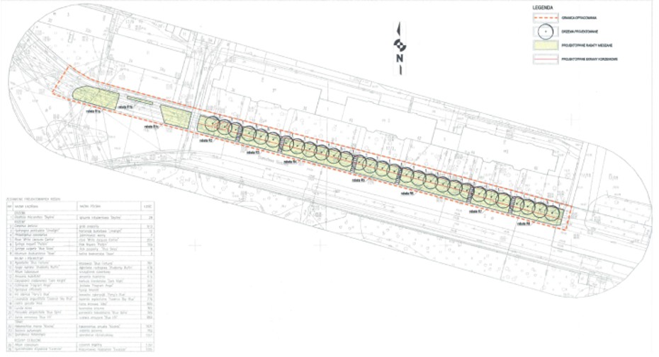 Plan nasadzeń przewiduje tam m.in.: róże, berberysy i proso rózgowate.
