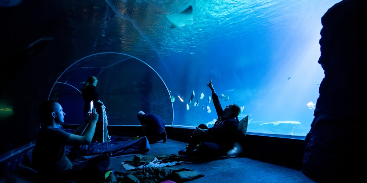 Nocowanie w Afrykarium to przede wszystkim nocleg w tunelu Mozambickim w otoczeniu rekinów, płaszczek, ryb i w towarzystwie żółwicy Stefanii (na karimacie albo dmuchanym materacu, w śpiworze), ale także: