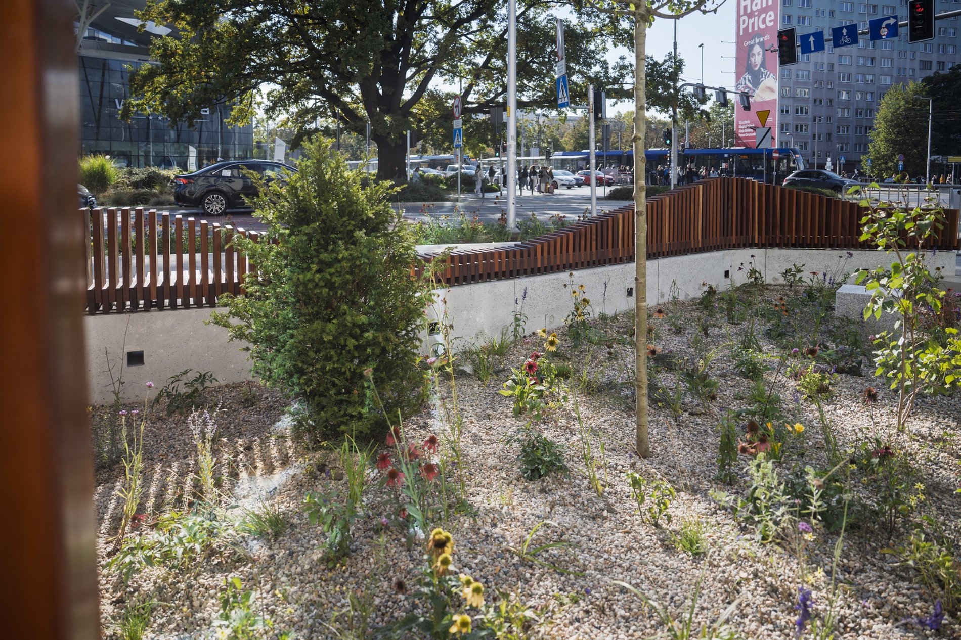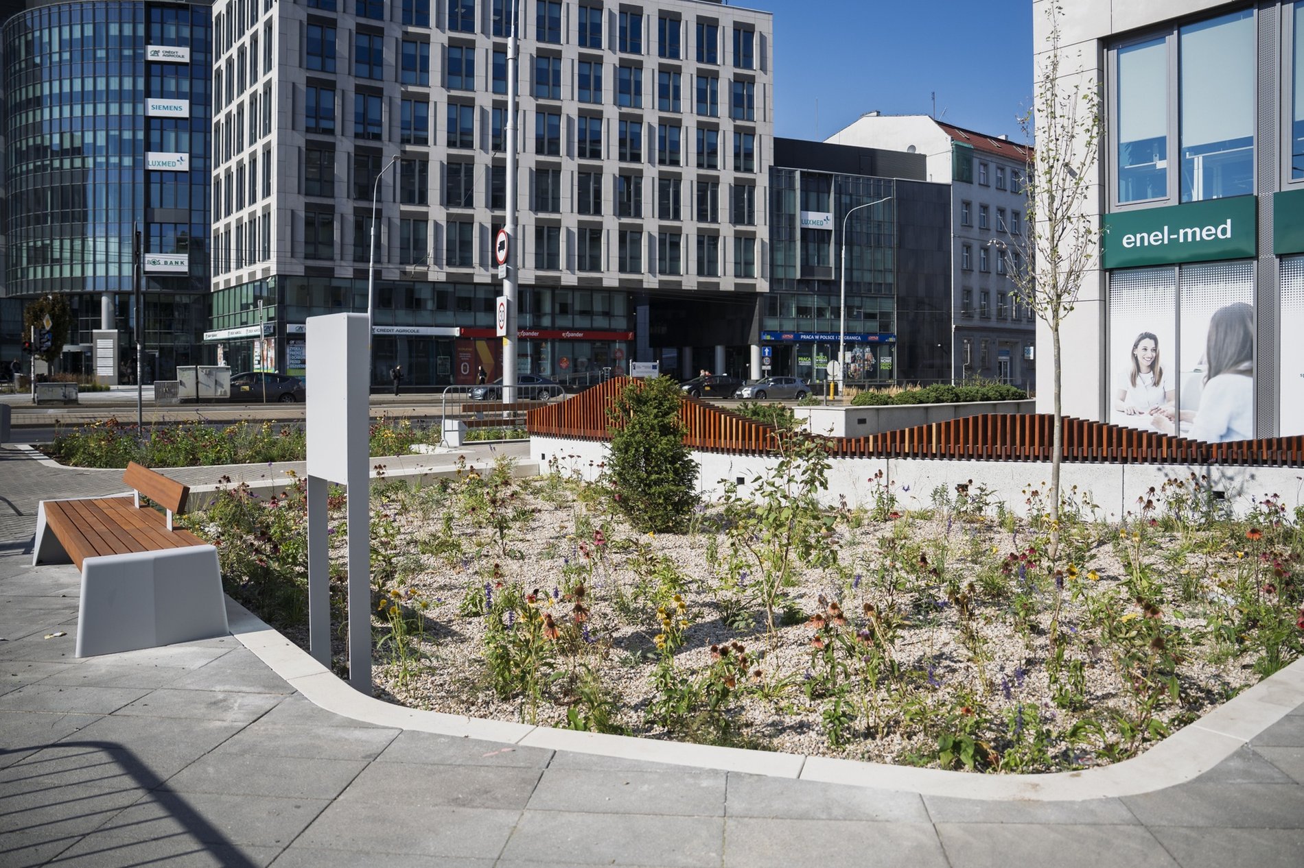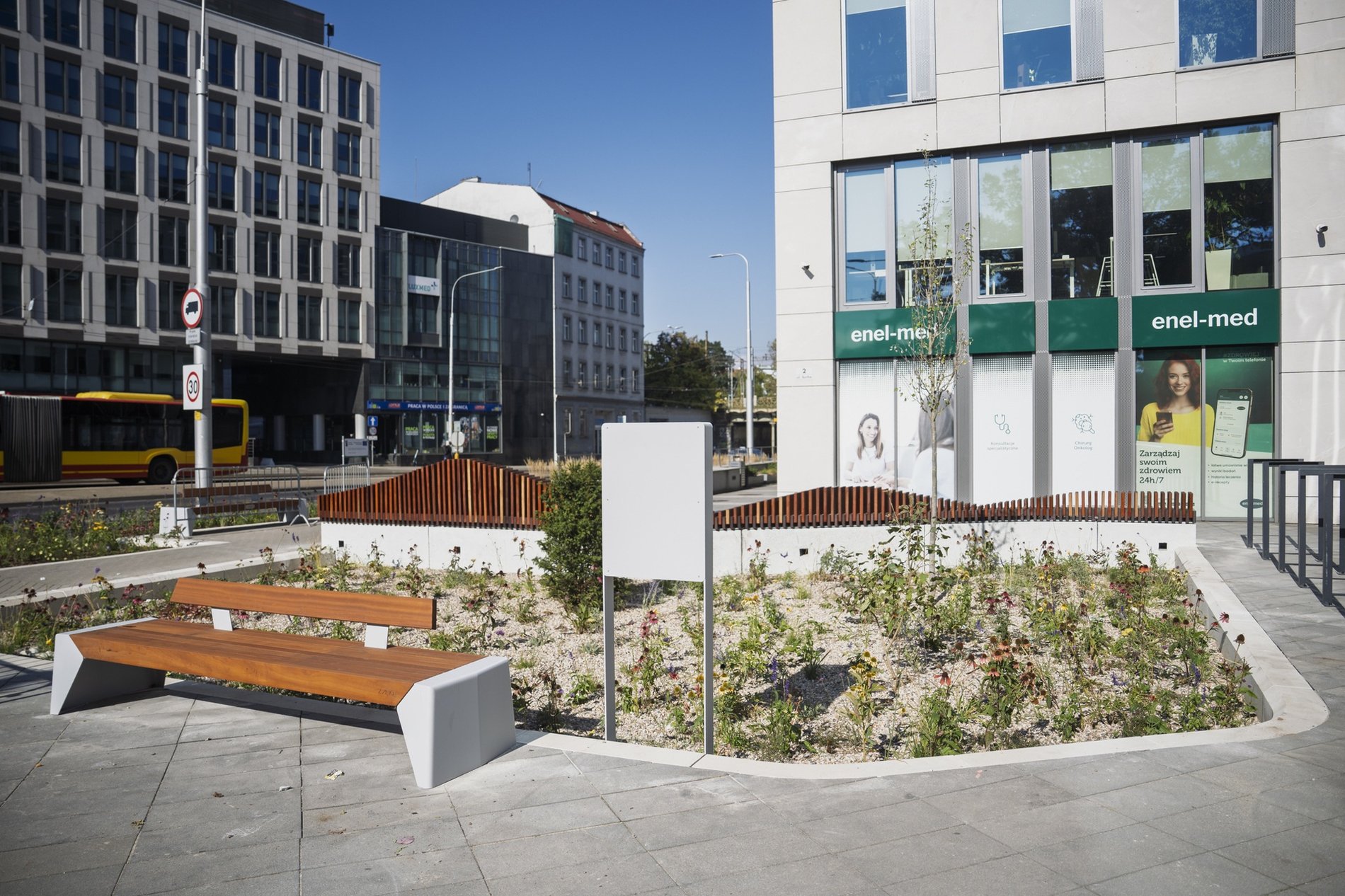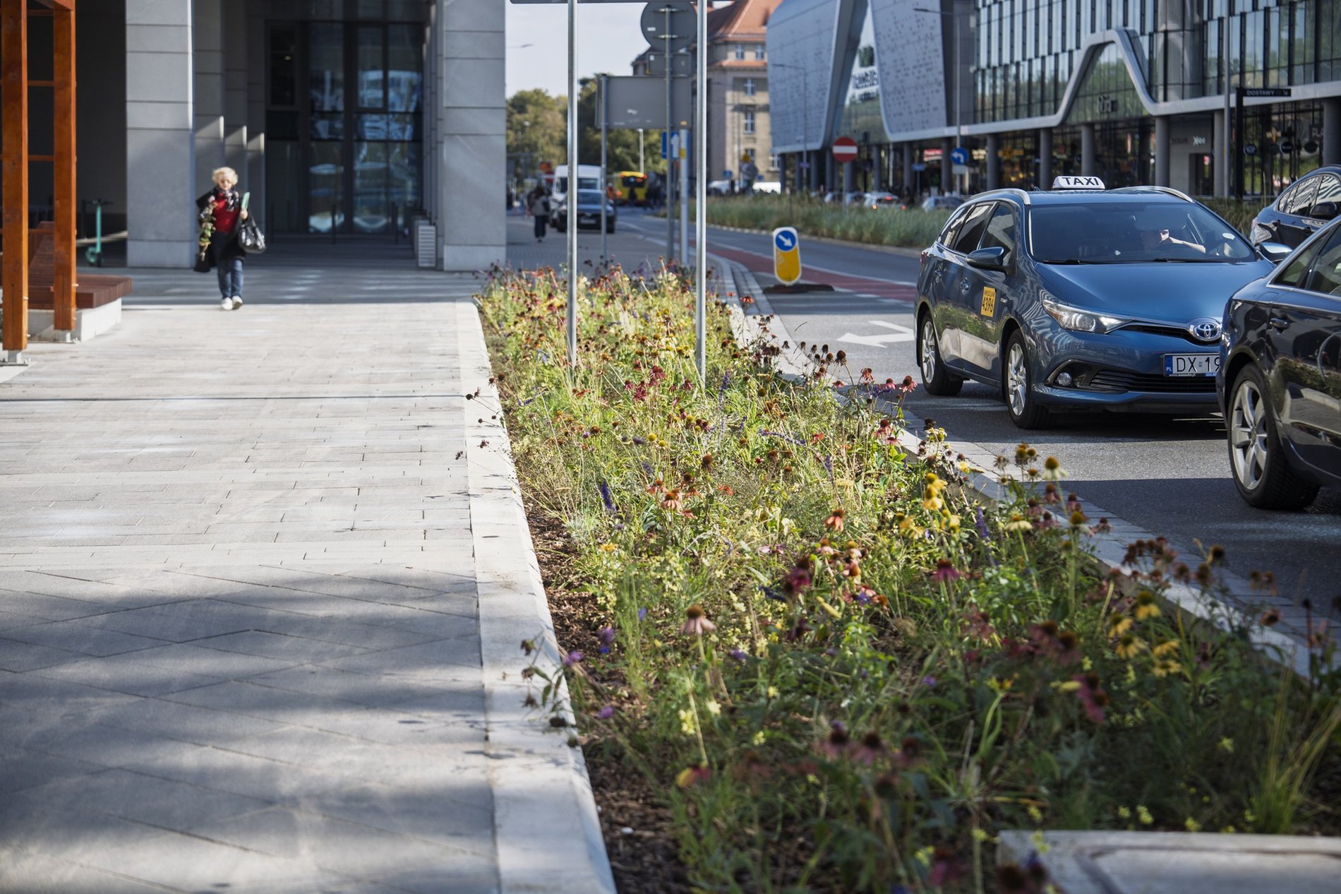 Nowy skwer jest jednym z wielu miejsc w mieście, gdzie zamienia się duże powierzchnie ulic i placów na zieleń. Podobną metamorfozę przeszło niedawno wejście na Promenadę Staromiejską przy pomniku Chrobrego, gdzie asfaltowy plac zmieniono w przestrzeń z ławeczkami, klombami i roślinnością.