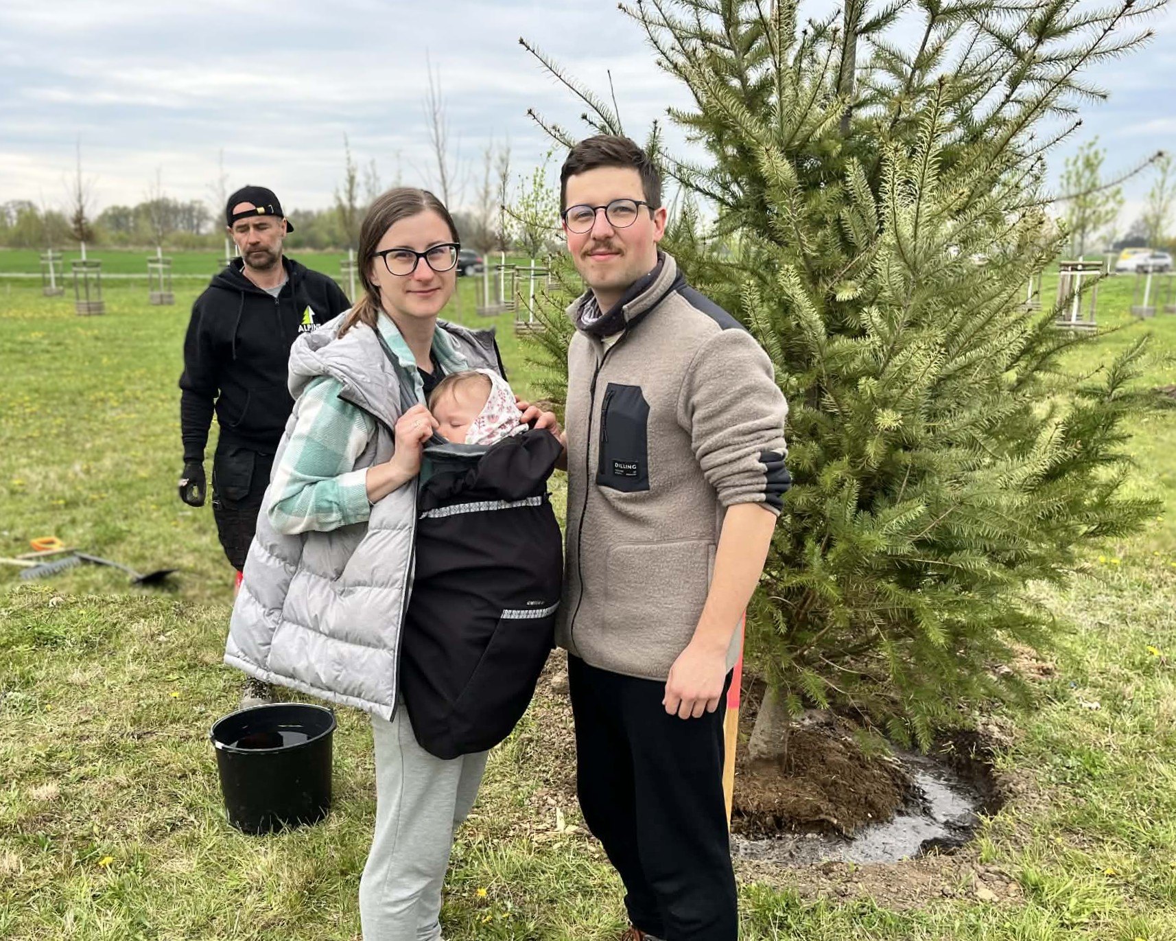 Pierwsza została wkopana daglezja. Posadzili ją dla Ali państwo Dorota i Jan Koch.