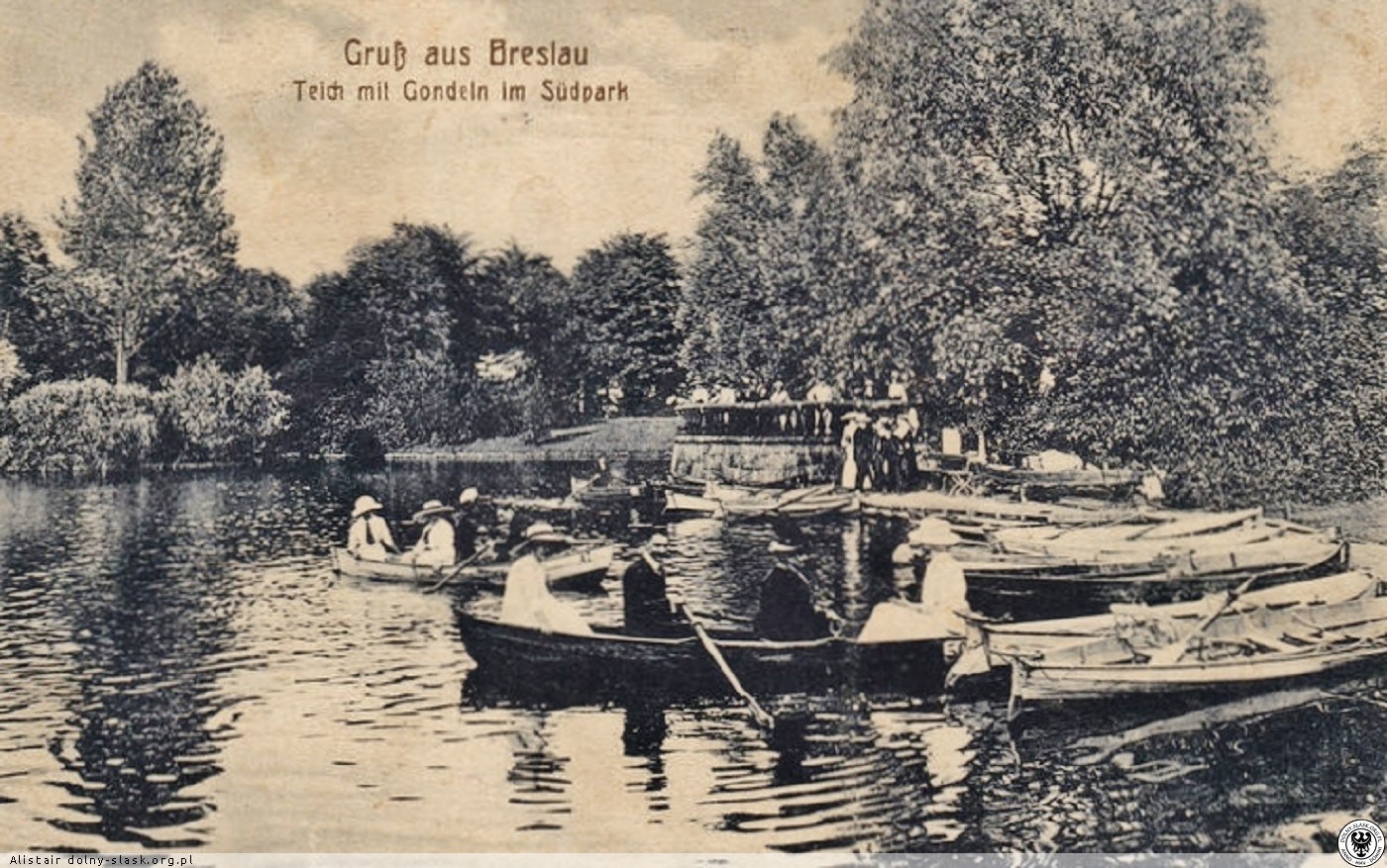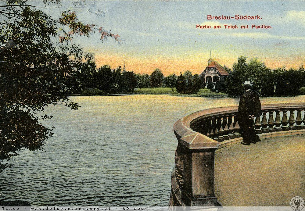 Mieszkaniec z dawnych czasów widział więcej: restaurację Georga Hassego, słynącego w mieście z produkcji piwa, i stojący na cyplu ażurowy pawilon Juliusa Schottlandera. Budowle te przeminęły, podobnie jak czasy pływania po stawie łódkami i jeżdżenia na łyżwach po tafli lodu.