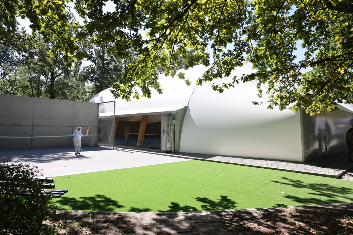 Integralną częścią założenia był kompleks sportowy wybudowany w latach 1892-1895. Od gospodarstwa ogrodniczego oddzielała do aleja. Początkowo składał się z placu sportowego (później z boiska) i okrągłego menażu. Na początku XX wieku powiększony o korty tenisowe z nawierzchnią trawiastą, o pawilon z szatnią i zadaszone trybuny.