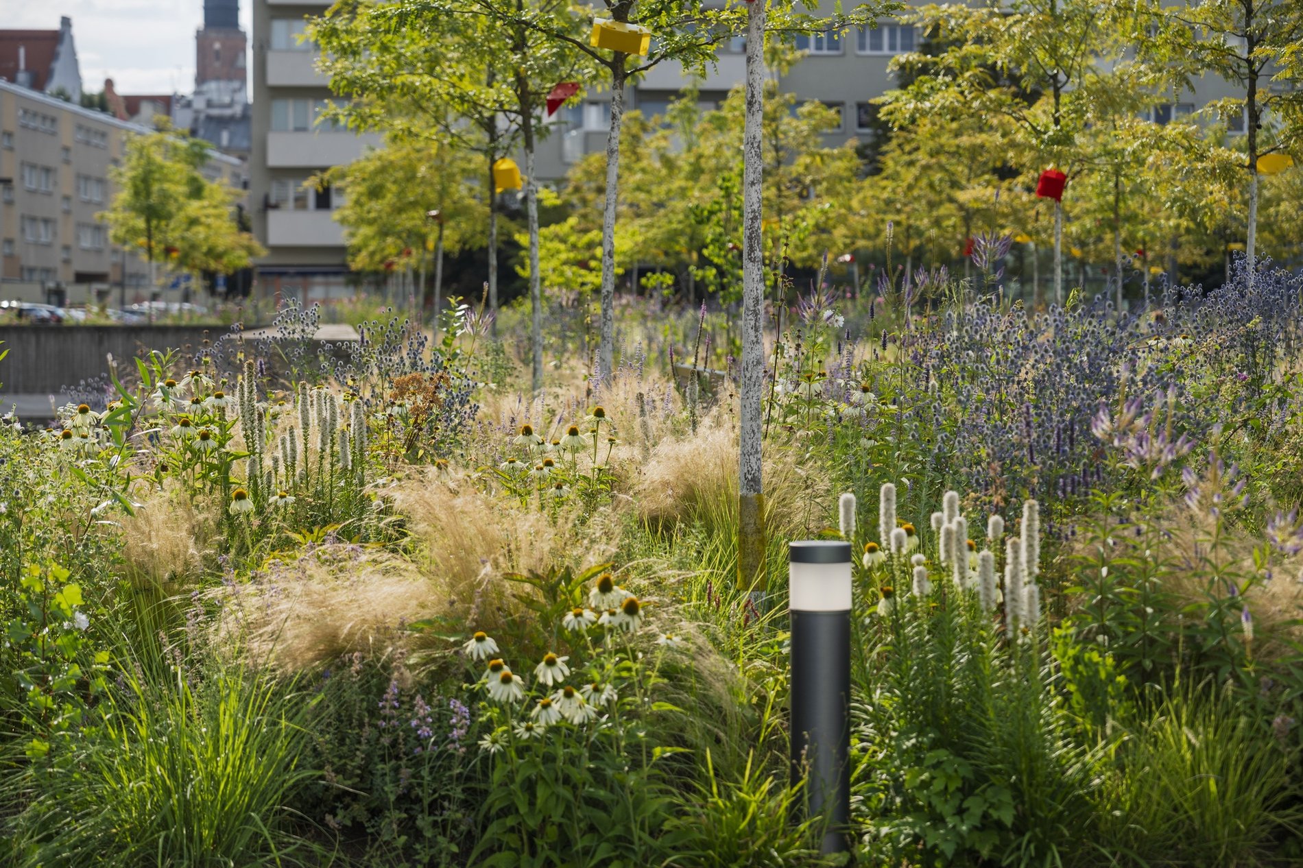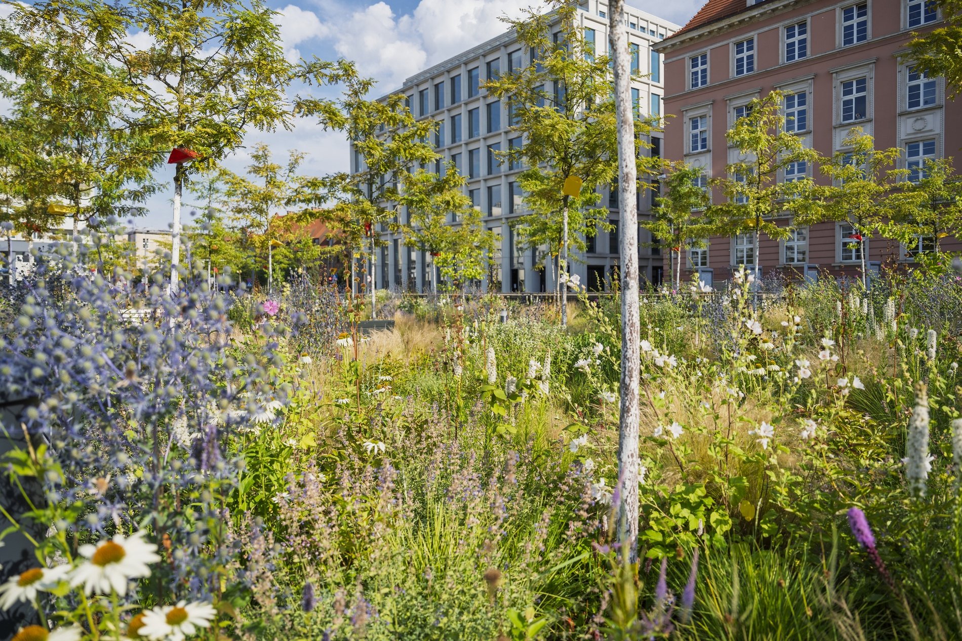 Sztandarowym przykładem jest zmiana, która zaszła na pl. Nowy Targ. Duży betonowy plac, pod którym jest podziemny parking i poniemiecki bunkier, przeszedł metamorfozę dzięki technologii zielonego dachu.