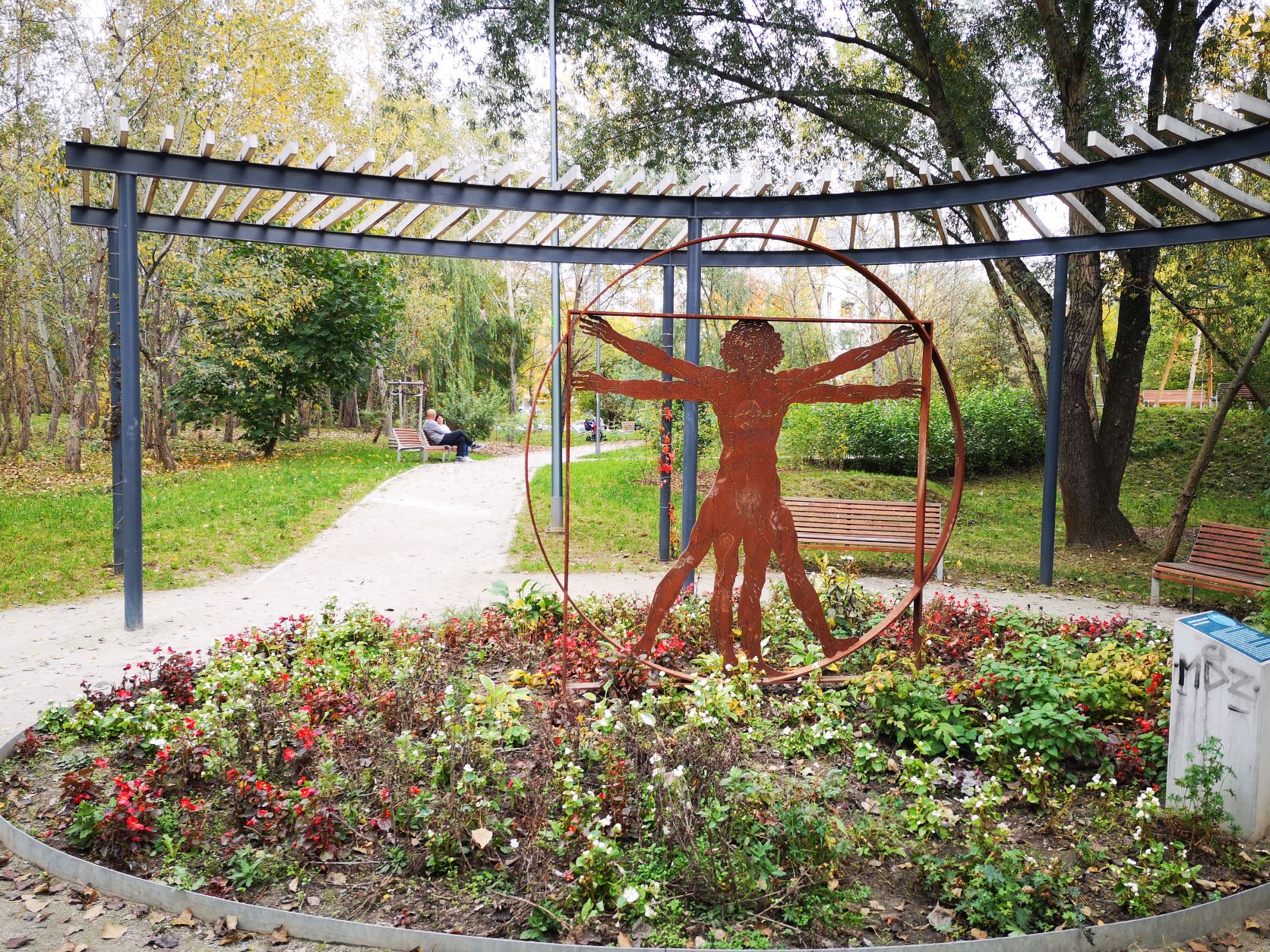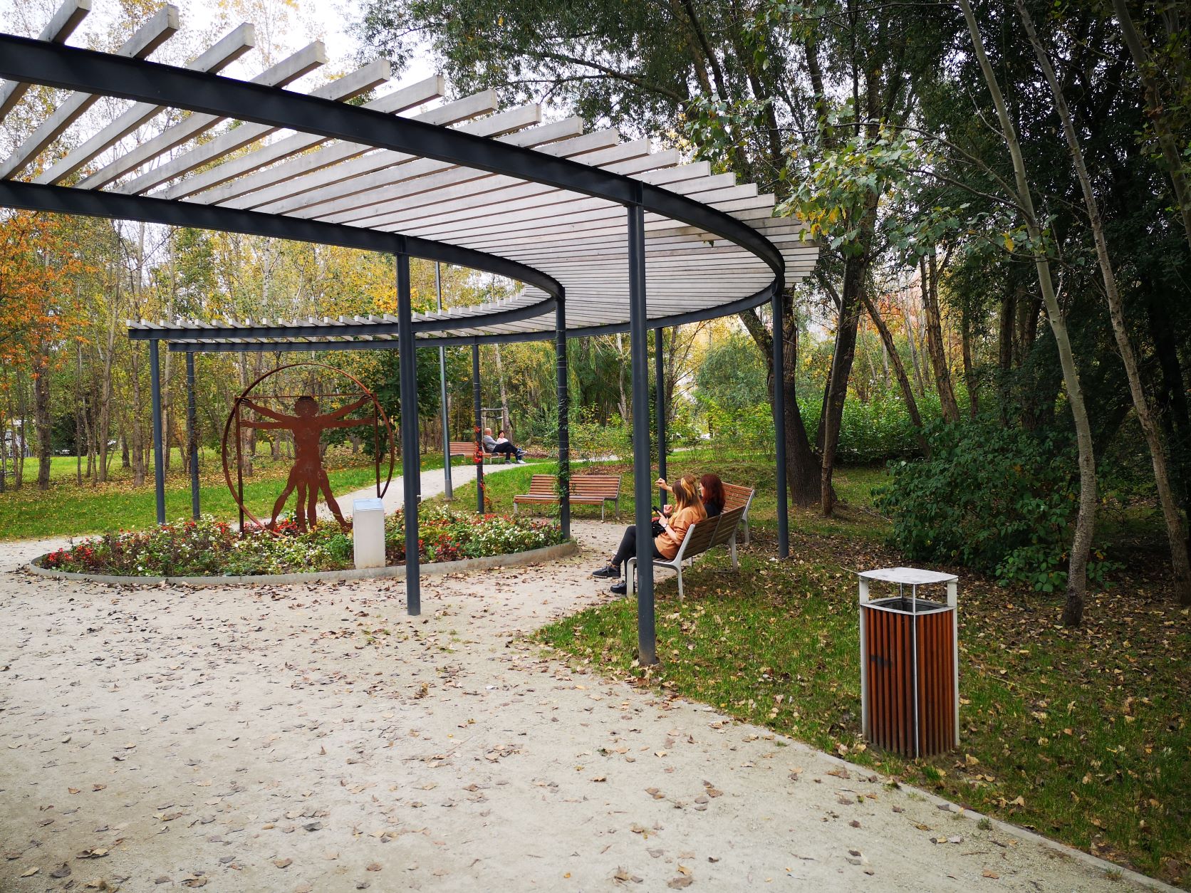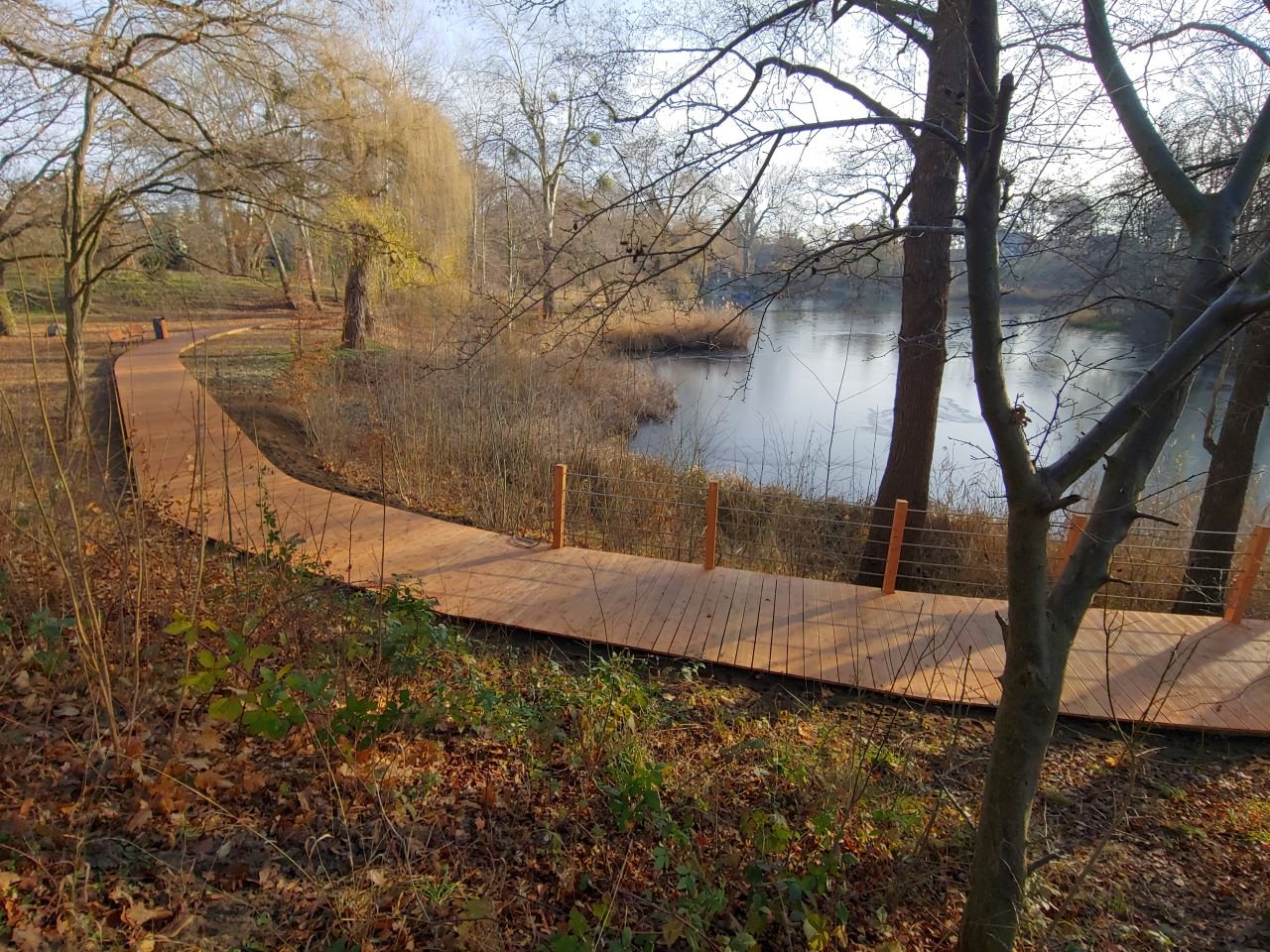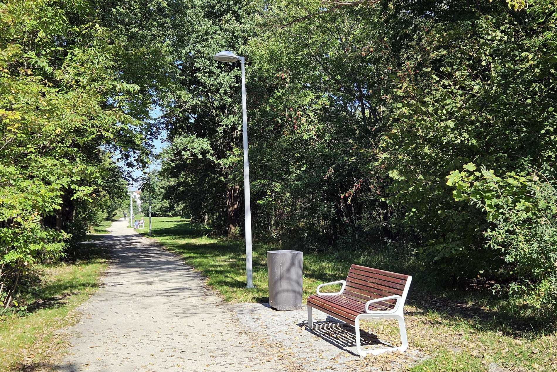 W alejkach parku oprócz standardowych ławek skrywają się też pergole, tunel wierzbowy i placyki z licznymi ławkami oraz leżakami.