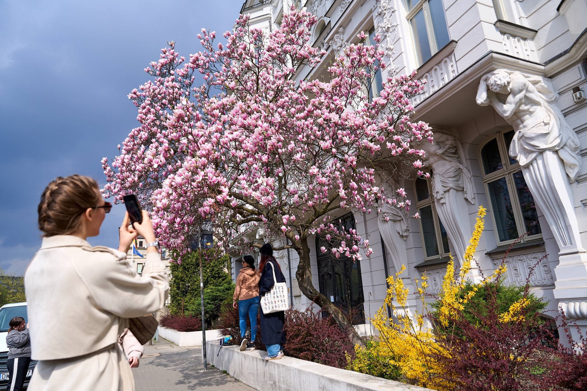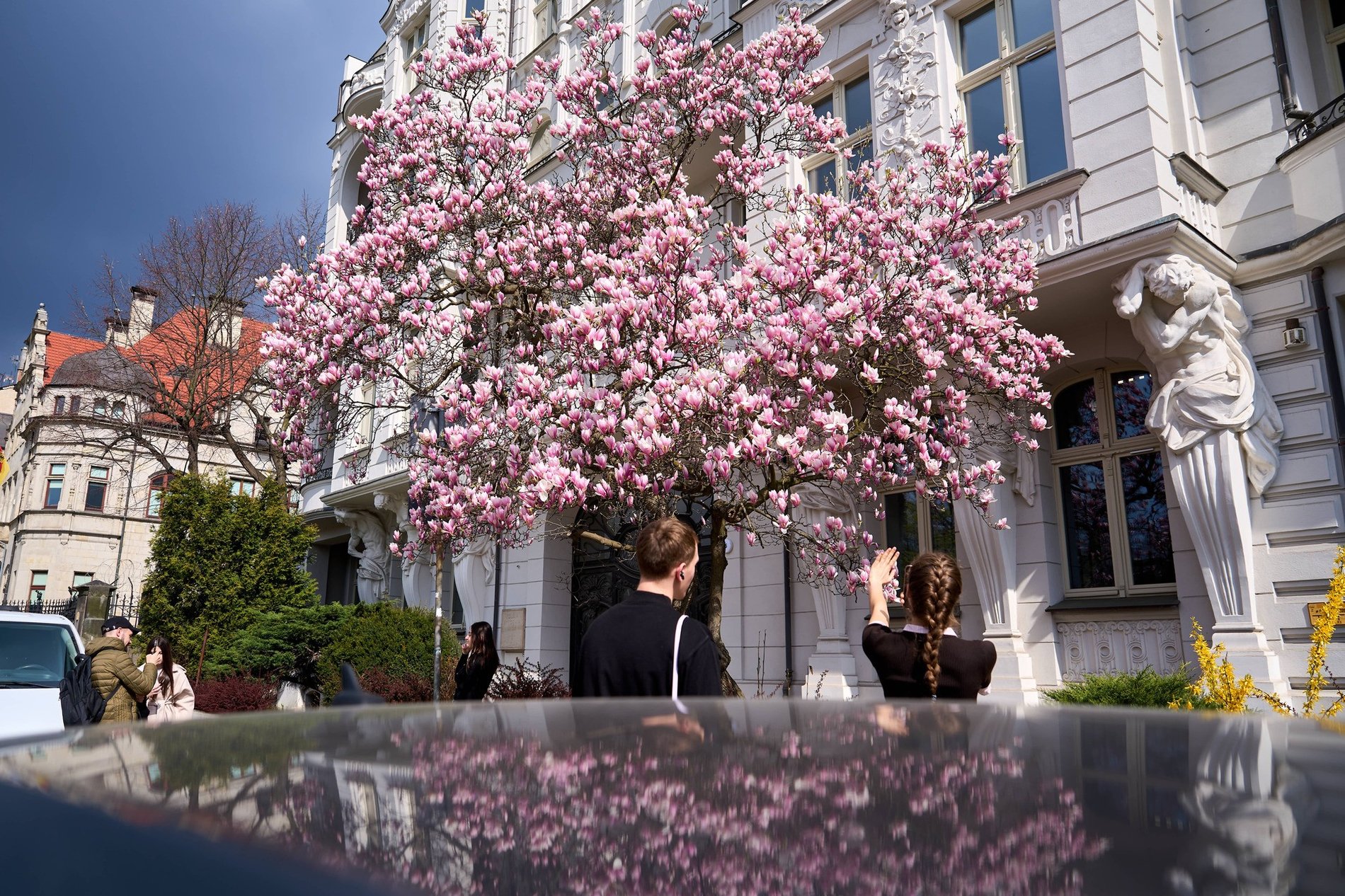 W promieniach wiosennego słońca magnolia stanowi piękne tło do fotografii. Dowodzą tego liczne osoby, które przychodzą tu specjalnie, by zrobić sobie zdjęcie na tak efektownym tle.