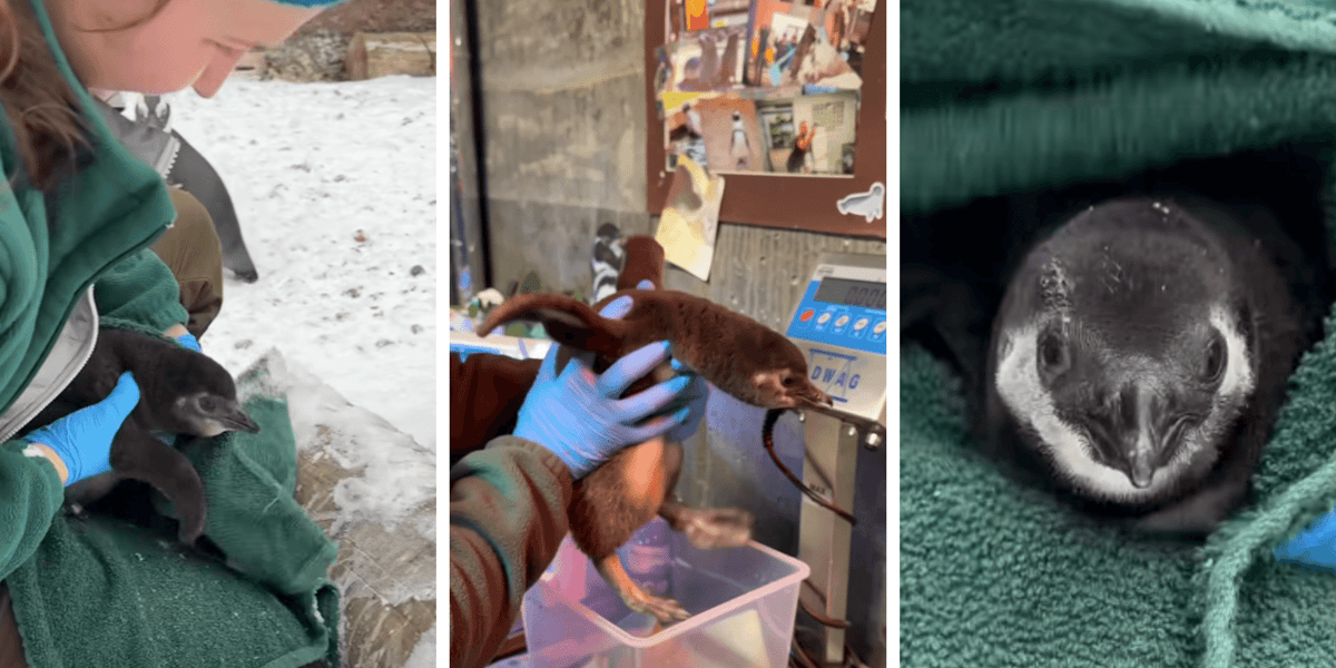Otulone ręcznikiem całkiem już spore pisklaki zostały przeniesione z wybiegu na zaplecze do pingwiniego przedszkola. Dlaczego tam trafiły? Na filmie, zamieszczonym przez zoo w mediach społecznościowych, tłumaczy to jedna z ich opiekunek, Kamila Bartosik.